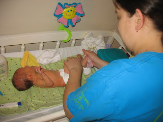 After 4 hours of sitting, watching t.v and just hanging out without much pain, the nurse and resident doctor came in to break my water (5:30pm). After breaking my water my contractions instantly got intense and could be felt. I was able to talk through some of these contractions and had to just breathe through the rest. Around 8:00 the nurse came in to check me and see how the pitocin was doing and found out that I was 5cm. (I was so happy. After hearing how long people can get stuck at 3 or 4 I was dreading hearing her say I was still 3cm). Jacob and I continued to be able to talk in between contractions and joke around. At 8:40 we wanted the nurse to check again since contractions were getting more painful and found that I was 6.5cm. dilated. Again we were thrilled! In about an hour I had progressed 1 and 1/2 cm yay!! We figured we would have little Alethea somewhere around 2 or 3am Saturday morning. (based on the norm that most people dilate a cm an hr) Now was the point when I really needed to stop thinking/talking/walking and work through the contractions. Previously I had been laying on the bed breathing through contractions, but now I had started to walk around and used the pregnancy ball. I LOVE the pregnancy ball. I firmly believe I wouldn't have been able to have a drug-free (other then pitocin) birth without the pregnancy ball. Contractions began to get VERY painful and I began to feel the urge to push and of course was told not to since I wasn't anywhere near 10cm. Finally, it got to the point where I really needed to be checked. There was NO WAY that I was going to continue with this pain or worse for another 4 hours; I NEEDED to know if i had progressed at all. Well Jacob called the nurse and we proceeded to move to the bed. Once I moved to the bed I involuntary began pushing. Jacob called the nurse and said "umm we are going to have a baby in here" (he had to call cause she had not come in the room yet). When the nurse came in at 10:40 I fully dilated and ready to push. I started "officially" pushing at 11pm; my doctor came in at 11:10 and Alethea was born at 11:30.